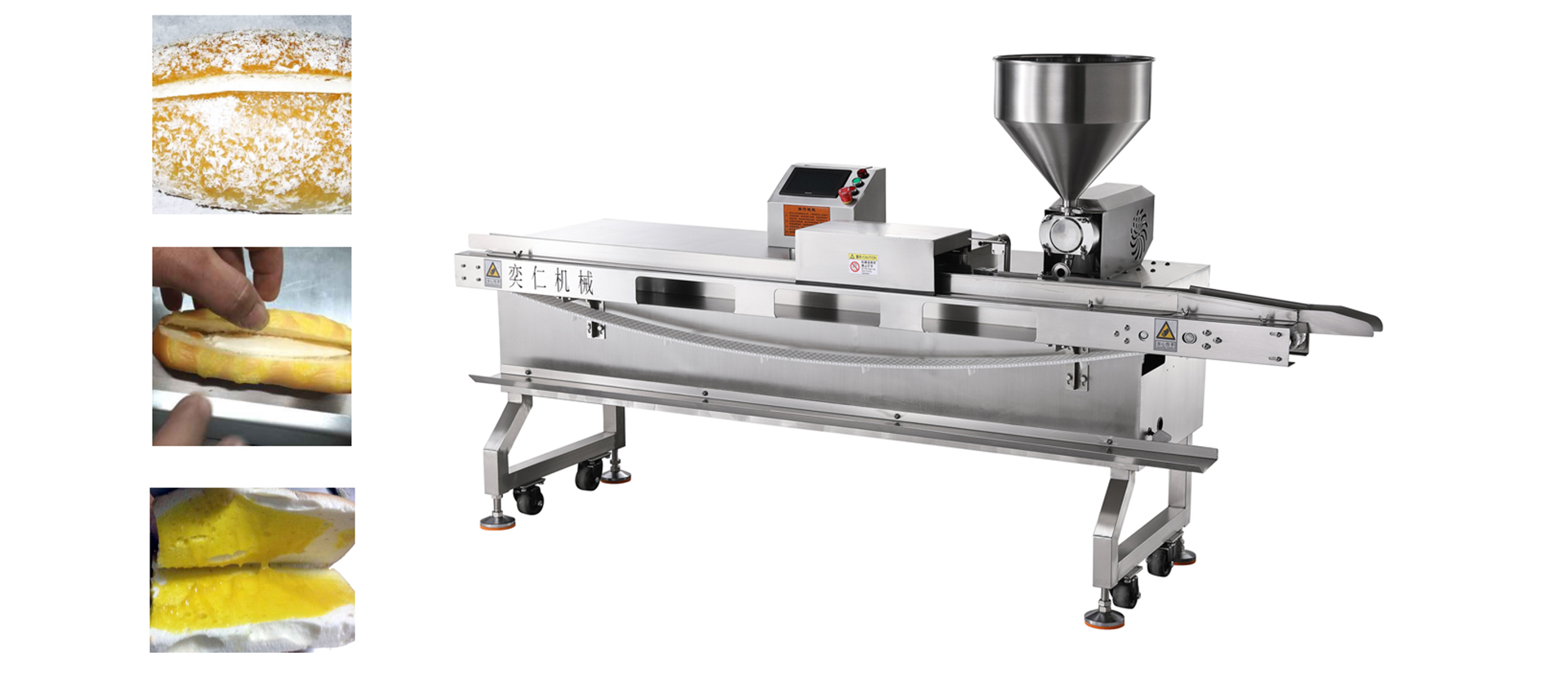 專業(yè)生產(chǎn)各種餅干夾心機、面包夾心機、淋漿機、油炸機等